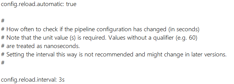 따라서, ./config/logstash.yml 설정 파일에서 다음과 같이 설정을 변경하면 3초마다 파이프라인이 지정된 conf 파일이 바뀌면 자동으로 다시 로드되도록 설정할 수 있다.