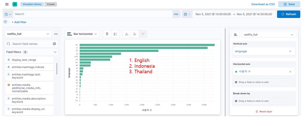 3) 트위터 사용자 언어(language) 분석