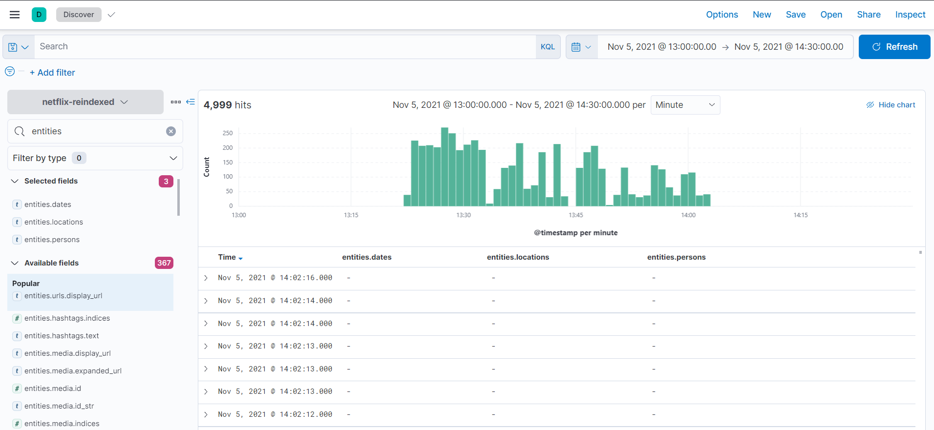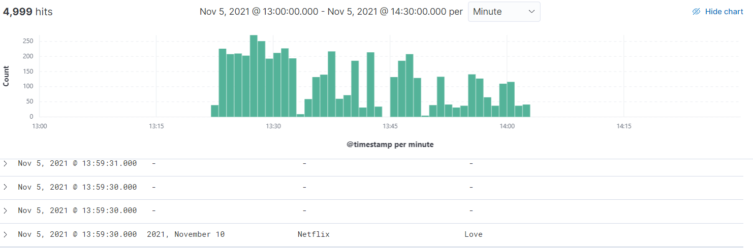 생성한 인덱스 패턴을 통해 데이터를 조회해보았는데, 원하는 데이터 값은 들어있지 않았다 ㅜㅡㅜ