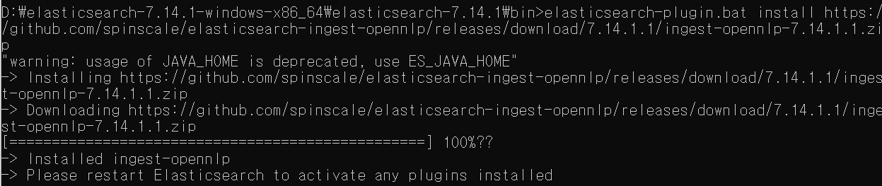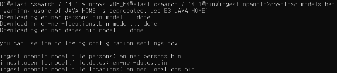 # elasticsearch -> bin -> ingest-opennnlp 폴더로 이동 후 실행