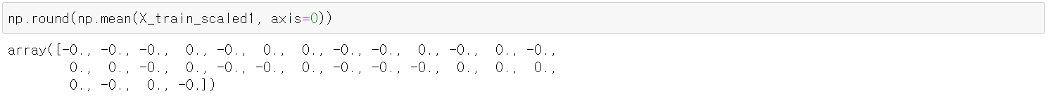 · SVM, 선형회귀, 로지스틱 회귀 알고리즘에 대해 표준화를 수행하면 대부분의 경우 성능이 향상됨
