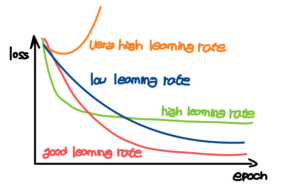 · Learning Rate를 하나로 지정할 수도 있으나, 학습이 반복되는 동안 그 값을 변경하여 성능 향상을 꾀하기도 한다.