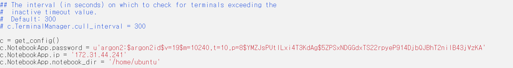 $ sudo vi /home/ubuntu/.jupyter/jupyter_notebook_config.py