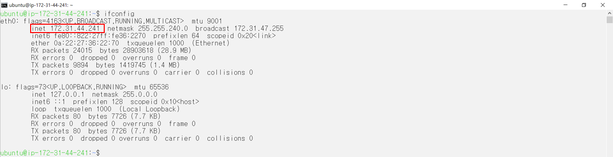 -> 환경 설정 파일을 수정하기 앞서, 내부 네트워크 주소를 알아야 합니다.