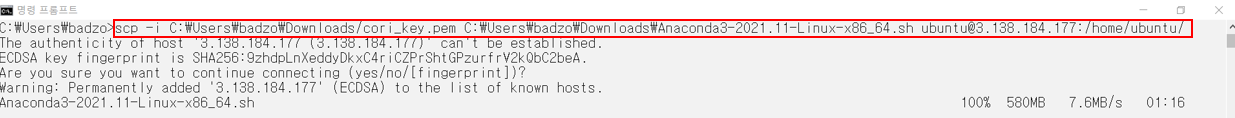 이렇게 다운받은 파일을, 저희의 amazon instance로 옮겨야 해요. 이를 위해 scp 명령을 사용할겁니다.