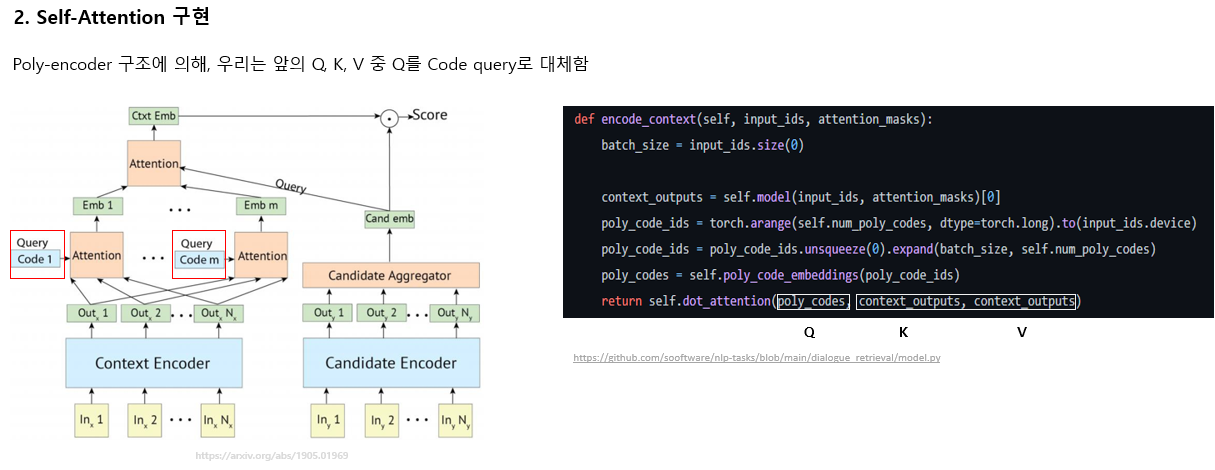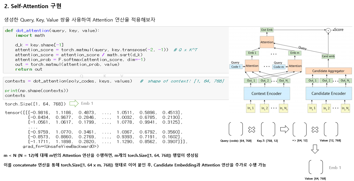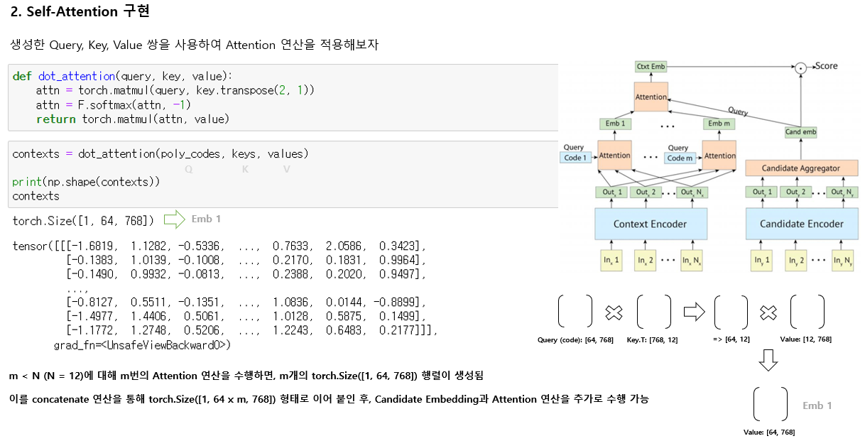 * attention 연산을 위와 같이 작성하였더니, Poly-encoder 출력 값과 Bi-encoder 출력 결과가 동일하게 나와서 수정