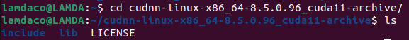 $ tar -xvf cudnn-linux-x86_64-8.5.0.96_cuda11-archive.tar.xz