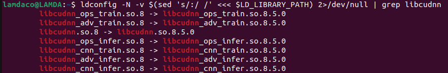 $ ldconfig -N -v $(sed 's/:/ /' <<< $LD_LIBRARY_PATH) 2>/dev/null | grep libcudnn