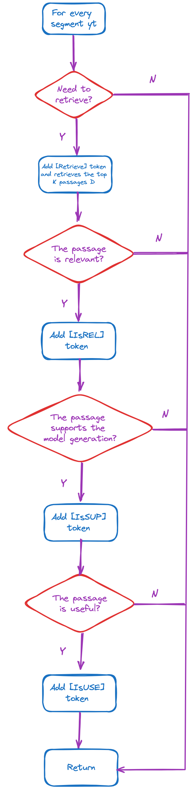 - [IsREL]: 주어진 데이터 d가 문제 x를 해결하는 데 필요한 정보를 포함하고 있는지 여부를 판단하는 관련성 검사