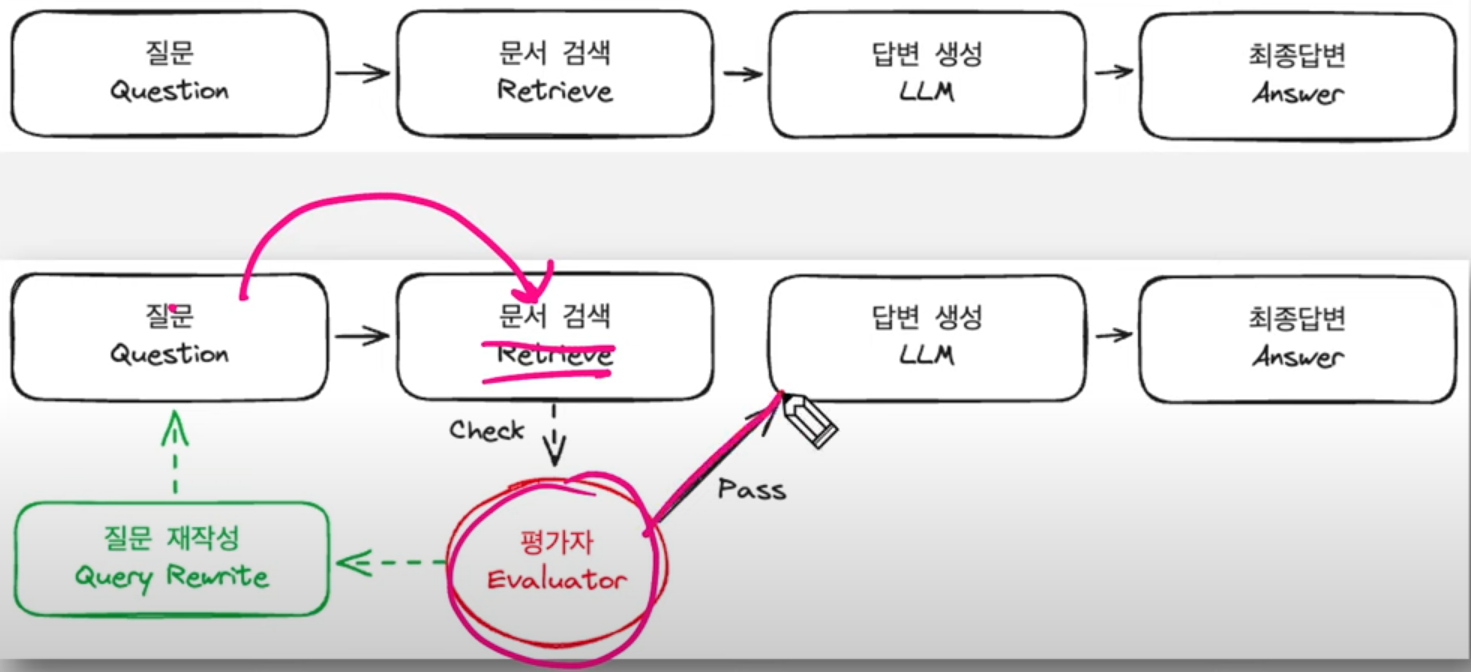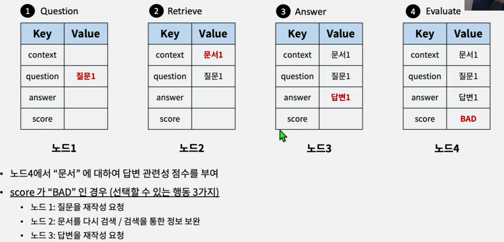if 결과가 만족스럽지 않다면, 검색 노드로 다시 보내는 작업 가능