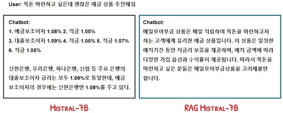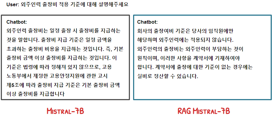 기존 사용자 질의와 증강된 사용자 질의를 LLM에 전달했을 때 생성되는 응답을 비교하면 증강된 사용자 질의를 입력받은 모델의 출력 값이 보다 나은 것을 확인할 수 있다.