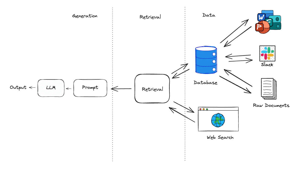 추출 단계에서는 사용자가 던진 질문과 관련성이 높은 정보를 외부 문서에서 '추출'해온다. 추출한 정보를 A info라 했을 때, 증강 단계에서 A info와 기존 사용자 질의를 결합해 프롬프트를 새롭게 '증강'한다.