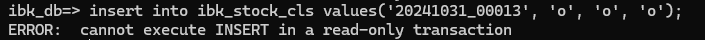 슬레이브 서버에서 데이터를 조작하려고 하면, 다음과 같이 오류가 발생하는 것을 볼 수 있다.