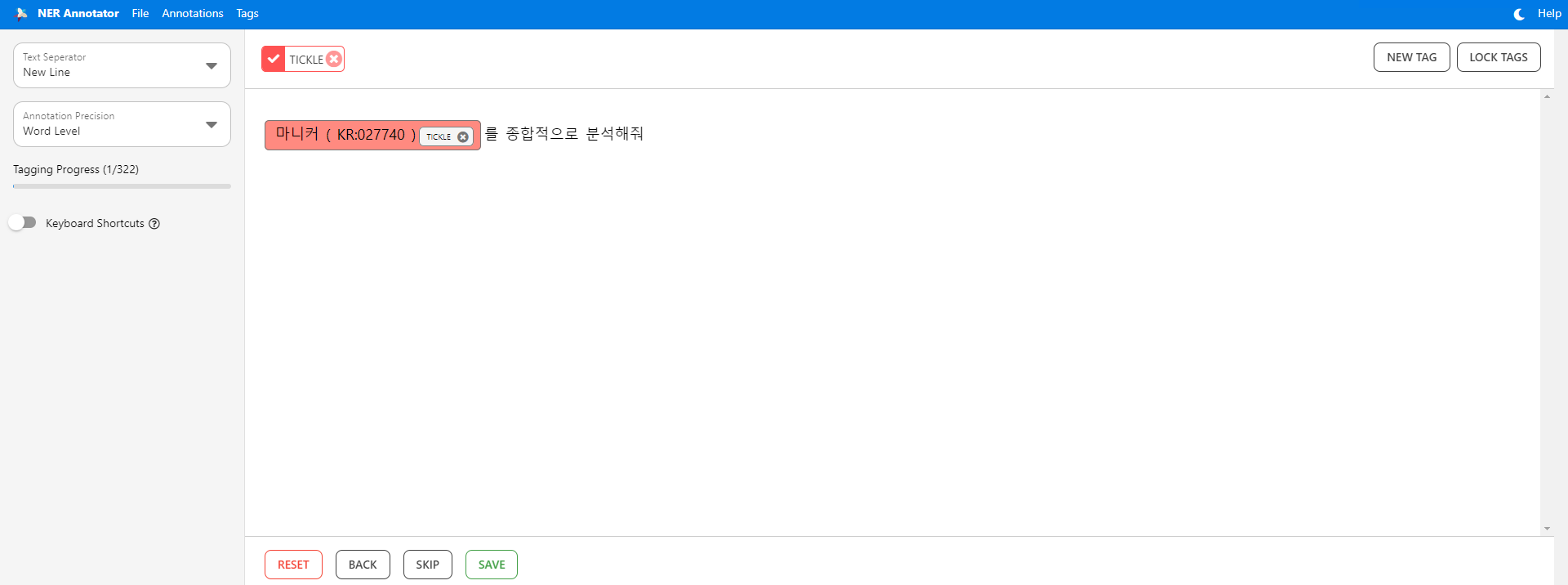 따로 추렸다. 아주 다행인건, NER 태깅을 위한 사이트가 무료로 공개되어 있다는 것이었다 !