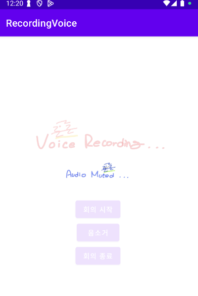 음성 녹음, 음소거, 녹음 중지 기능은 버튼을 만들어 각 버튼이 눌릴 때마다 호출되도록 설정했다.