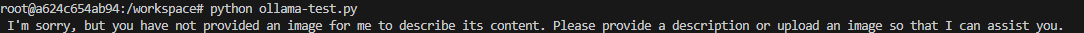 설정이 완료되었다. 다음과 같이 테스트 코드를 작성해서 실행하면, 컨테이너 내부에서 외부 Ollama의 모델이 동작하는 것을 볼 수 있을 것이다 !