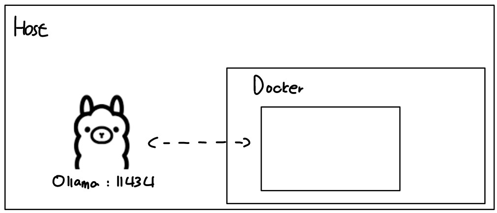 현재 사용중인 개발 방식은 로컬 컴퓨터(Host)에서 Ollama를 실행해두고, 개발중인 도커 환경 내에서 호스트의 Ollama와 연결하는 것이다.