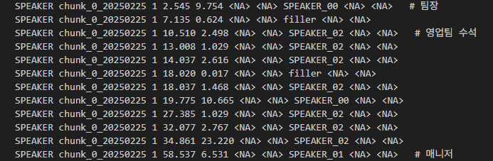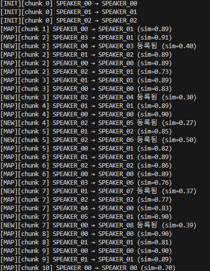 * 아직 청크별 화자 연결이 남아 있고, 이 과정을 진행하면서 발견한 문제점이라, 이 부분은 아래에서 추가적으로 다룬다.