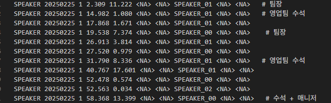 고도화한 화자 구분 모델을 사용해 동일 오디오 파일에 대한 화자 구분을 수행한 결과는 다음과 같다.