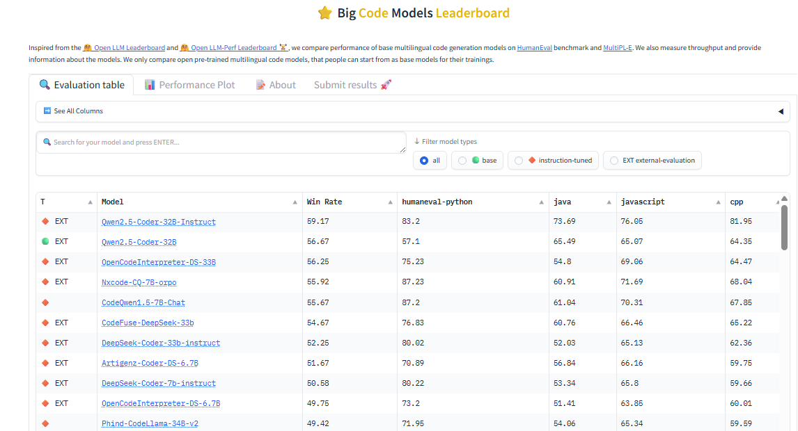 - https://huggingface.co/spaces/bigcode/bigcode-models-leaderboard