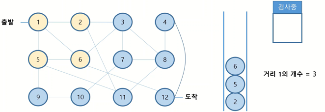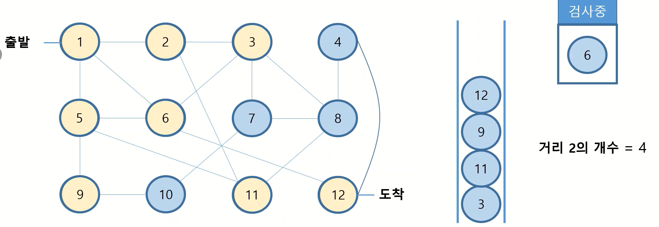 · 6번 섬을 꺼내면 거리가 1인 섬들의 개수는 0이 되고, 큐에 존재하는 남은 섬들 = 거리가 2인 섬들이 됨
