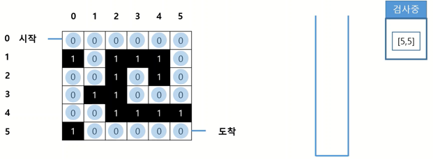 · 해당 문제를 풀기 위해 갈 수 있는 길은 0, 갈 수 없는 길은 1로 표시하고, 스택을 선언