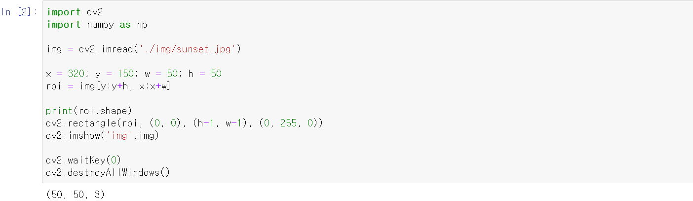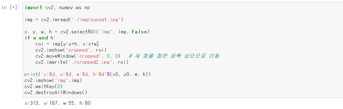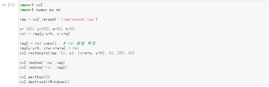 1. 관심영역 지정, 관심영역의 좌표를 알고 있는 경우
