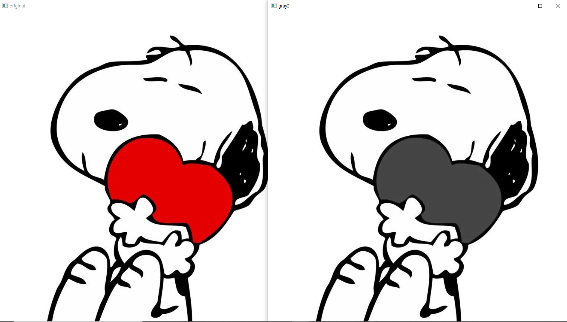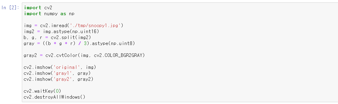 · cv2.COLOR_GRAY2BGR -> 그레이 스케일 이미지를 BGR 컬러 이미지로 변환